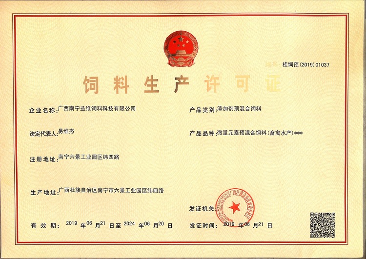 益維—添加劑預混合飼料生產許可證