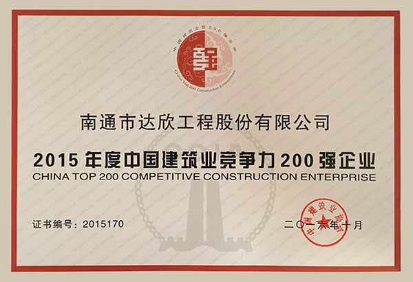 新的《中國(guó)建筑業(yè)雙200強(qiáng)企業(yè)評(píng)價(jià)辦法》主要從經(jīng)營(yíng)規(guī)模、資產(chǎn)規(guī)模、盈利能力、上繳稅金、科技、質(zhì)量、精神文明等五個(gè)方面進(jìn)行綜合評(píng)價(jià),經(jīng)企業(yè)自愿申報(bào)、各地區(qū)和有關(guān)行業(yè)協(xié)會(huì)推薦、專家評(píng)審。這是公司連續(xù)5年榜上有名,也是公司首度由成長(zhǎng)性百?gòu)?qiáng)跨入中國(guó)建筑業(yè)競(jìng)爭(zhēng)力200強(qiáng)企業(yè)序列,標(biāo)志著公司綜合競(jìng)爭(zhēng)力水平再上新臺(tái)階。