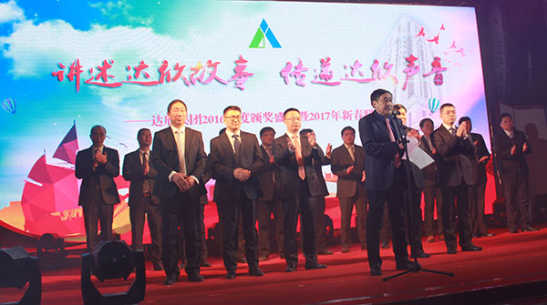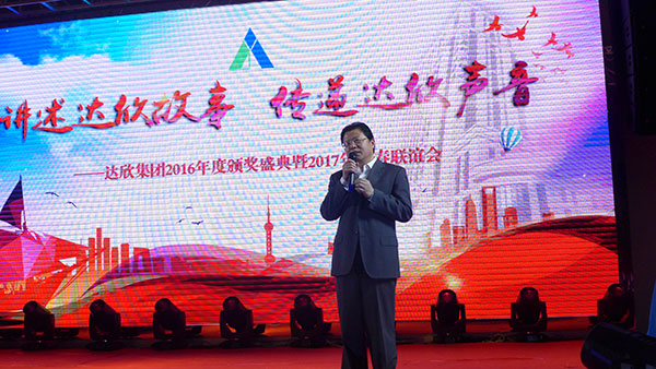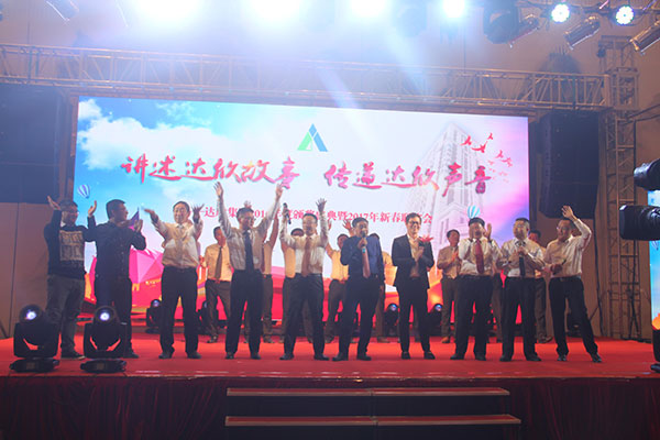 集團(tuán)高管們?cè)谂炫鹊摹斑_(dá)欣之歌”聲中激情登場(chǎng),公司董事長馬和軍進(jìn)行了致辭答謝。他回顧了公司 一年來所取得的輝煌成績(jī),感謝社會(huì)各界及公司全體同志們的努力,并對(duì)公司的未來發(fā)展之路描繪了藍(lán)圖;接著,縣委書記陸衛(wèi)東發(fā)表重要講話, 他指出,建筑業(yè)是我縣的傳統(tǒng)產(chǎn)業(yè),也是一個(gè)富民強(qiáng)勢(shì)產(chǎn)業(yè),還是我縣財(cái)政收入的重要來源之一,作為縣內(nèi)的骨干企業(yè),達(dá)欣公司步入了公司歷史以來發(fā)展最快、榮譽(yù)最高、分配最多、貢獻(xiàn)最大的時(shí)期,他希望公司要加快發(fā)展,高起點(diǎn)定位,突出重點(diǎn),好中求快,實(shí)現(xiàn)達(dá)欣新飛躍。