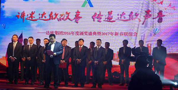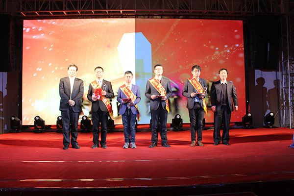 集團(tuán)黨委書記劉厚純宣讀了表彰決定, 縣領(lǐng)導(dǎo)為獲得集團(tuán)2016年度的創(chuàng)優(yōu)標(biāo)桿、實(shí)力標(biāo)桿、項(xiàng)目標(biāo)桿與管理標(biāo)桿、達(dá)欣新銳等先進(jìn)個(gè)人代表進(jìn)行了頒獎(jiǎng)。