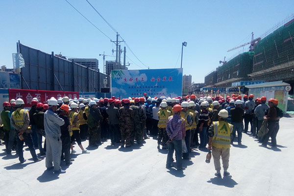 儀式上,君豪輕紡城項目部項目經(jīng)理雷遠明宣讀了《“安全生產(chǎn)月” 、“安全生產(chǎn)萬里行”活動》的倡議書和安排部署;生產(chǎn)經(jīng)理盛慶國針對當前安全形勢、施工現(xiàn)場的安全隱患結(jié)合事故案例進行了教育。最后,工程公司經(jīng)理丁國東就“安全生產(chǎn)月”和“安全生產(chǎn)萬里行”活動提出具體要求,要求項目部全體人員迅速行動起來,積極抓好安全生產(chǎn)的各項工作,堅決杜絕生產(chǎn)安全事故的發(fā)生,確保全年安全生產(chǎn)目標的順利完成。
