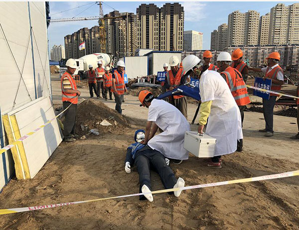 此次應(yīng)急救援預(yù)案演練模擬施工工人從高處墜落。“意外”發(fā)生后,現(xiàn)場負(fù)責(zé)人立即組織人員撤出危險區(qū),并在匯報情況后聽從指示在第一時間啟動應(yīng)急預(yù)案。在應(yīng)急總指揮的指令下,救援小組迅速就位,并有序展開警戒護(hù)衛(wèi)、技術(shù)排險、現(xiàn)場搶險、醫(yī)療救護(hù)等各項救援工作,使險情得到有效控制,隨后,傷員被送往醫(yī)院進(jìn)行救治。