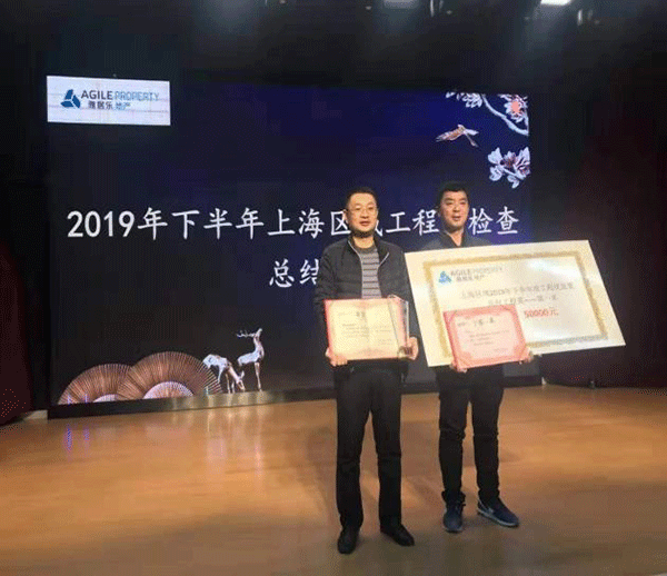 雅居樂地產(chǎn)集團為保證工程質(zhì)量,激勵區(qū)域內(nèi)各承建公司樹立優(yōu)秀總包單位標(biāo)桿,實施全年上、下半年度區(qū)域內(nèi)檢查評比,第一工程公司承接的中央府項目在雅居樂地產(chǎn)集團上海區(qū)域上半年檢查評比中獲得了“雅居樂上海區(qū)域總承包工程第一名”的殊榮。集團公司董事、第一工程公司經(jīng)理杭小建受邀在雅居樂地產(chǎn)集團上海區(qū)域上半年度總結(jié)大會上領(lǐng)獎并作經(jīng)驗交流。