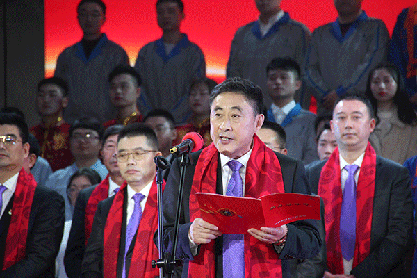 集團高管們在澎湃的“我和我的祖國”聲中激情登場,集團董事長馬和軍致辭答謝,他回顧了集團一年來所取得的輝煌成績,感謝社會各界及全體達欣人的努力,并對公司的未來之路描繪了新的發(fā)展藍圖。