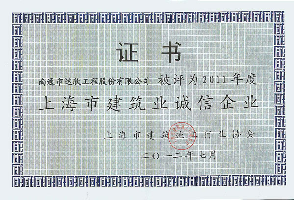 根據(jù)《上海市建筑施工企業(yè)誠(chéng)信建設(shè)行業(yè)評(píng)價(jià)試行辦法》和《上海市建筑施工企業(yè)綜合實(shí)力排名辦法》、2011年度企業(yè)誠(chéng)信建設(shè)相關(guān)考核、《指標(biāo)體系及評(píng)分標(biāo)準(zhǔn)》等內(nèi)容,第一工程公司在經(jīng)過(guò)申報(bào)、初審、征詢主管部門(mén)意見(jiàn)、上網(wǎng)公示四個(gè)環(huán)節(jié)后,最終由上海市建筑施工企業(yè)誠(chéng)信建設(shè)行業(yè)評(píng)價(jià)委員會(huì)審定通過(guò),榮獲2011年度“上海市建筑業(yè)誠(chéng)信企業(yè)”稱號(hào)。這是達(dá)欣股份自易名以來(lái)連續(xù)五年獲此殊榮。此外公司還被評(píng)為2011年度“上海市建筑施工企業(yè)綜合實(shí)力進(jìn)步獎(jiǎng)”稱號(hào),承建的萬(wàn)寶國(guó)際廣場(chǎng)項(xiàng)目榮獲2011年度上海市“白玉蘭”優(yōu)質(zhì)工程。