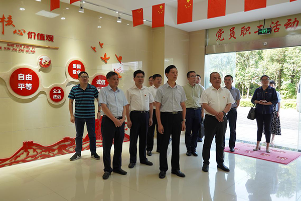 7月24日,省委組織部組織三處(省委“兩新”工委辦公室)三級(jí)調(diào)研員張繼東、一級(jí)主任科員劉明蒞臨集團(tuán)調(diào)研黨建工作。南通市市委黨建辦副主任俞雷、兩新工委辦公室主任周鋒杰,海安市市委組織部常務(wù)副部長(zhǎng)陳錦璜,海安市市委組織部副部長(zhǎng)、“兩新”工委書記、機(jī)關(guān)工委書記劉建軍,胡集街道黨工委書記單蓓,集團(tuán)董事長(zhǎng)馬和軍等陪同。