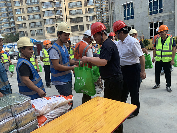 市長于立忠一行為大家送來了毛巾、防暑降溫飲品等消暑物品,感謝大家為建造和諧社會、美好家園在高溫酷暑中依然堅守,為祖國、為家鄉(xiāng)做貢獻,同時也希望大家立足本職工作,繼續(xù)發(fā)揚特別能吃苦、特別能戰(zhàn)斗的主力軍作風,展現(xiàn)新時期達欣鐵軍隊伍特有的風采,并反復叮囑大家一定要安全施工,合理安排作息時間,勞逸結合,保重身體,做好防暑降溫措施。