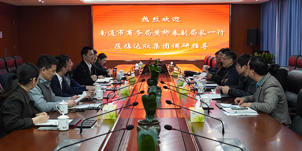 2月24日上午,南通市商務(wù)局黨組成員、副局長(zhǎng)黃柳春率隊(duì)蒞臨達(dá)欣集團(tuán)調(diào)研,海安市商務(wù)局副書記、副局長(zhǎng)史霞兵,集團(tuán)董事長(zhǎng)馬和軍、黨委書記劉厚純、常務(wù)副總經(jīng)理王邦國(guó)等陪同。