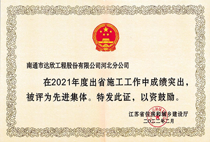 此外,第六黨支部被評為“2021年度江蘇進(jìn)津冀施工優(yōu)秀黨組織”,楊靜、徐培華、吉順祥同志被評為“2021年度江蘇省出省施工先進(jìn)個人”,徐仁忠同志被評為“2021年度江蘇進(jìn)津冀施工先進(jìn)企業(yè)經(jīng)理”,謝廣財同志被評為“2021年度江蘇進(jìn)津冀施工優(yōu)秀黨務(wù)工作者”,郝路同志被評為“2021年度江蘇進(jìn)津冀施工優(yōu)秀共產(chǎn)黨員”,王順乾、高云青、王愛軍同志被評為“2021年度江蘇進(jìn)津冀施工優(yōu)秀建造師”,朱玉平、劉剛、張生同志被評為“2021年度江蘇進(jìn)津冀施工先進(jìn)工作者”等榮譽。