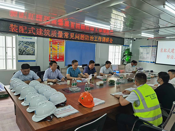 吳慧強(qiáng)從項(xiàng)目概況、前期準(zhǔn)備、常見問題和防治、現(xiàn)場(chǎng)不足五方面向領(lǐng)導(dǎo)們作了匯報(bào)。他表示,項(xiàng)目部將結(jié)合工程實(shí)際經(jīng)驗(yàn),積極為裝配式產(chǎn)業(yè)發(fā)展建言獻(xiàn)策。
