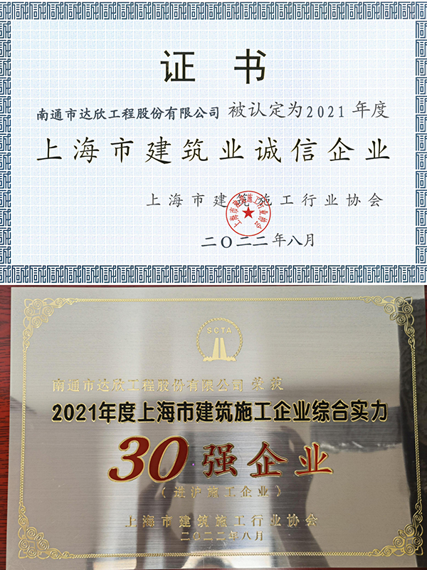 近日,上海市建筑施工行業(yè)協(xié)會(huì)公布了2021年度“上海市建筑業(yè)誠信企業(yè)”和“上海市建筑施工企業(yè)綜合實(shí)力”認(rèn)定結(jié)果。第一工程公司連續(xù)14年獲得“上海市建筑業(yè)誠信企業(yè)”和“上海市建筑施工企業(yè)綜合實(shí)力”稱號(hào)。