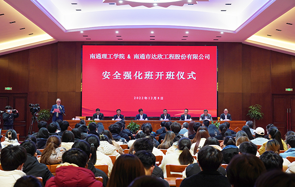 12月8日下午,南通理工學院-達欣集團校企合作“安全強化班”開班儀式,在南通理工學院海安校區(qū)舉行。南通理工學院董事長陳明宇,黨委副書記、海安校區(qū)黨工委書記、管委會副主任周宗泉,校長助理、海安校區(qū)管委會副主任謝衛(wèi)軍等校領導;達欣集團董事長馬和軍,黨委書記劉厚純,常務副總經(jīng)理王邦國,副總經(jīng)理、安全總監(jiān)、工會主席溫鶴華等出席活動。南通理工學院建筑工程學院院長、黨總支書記劉榮桂主持會議。