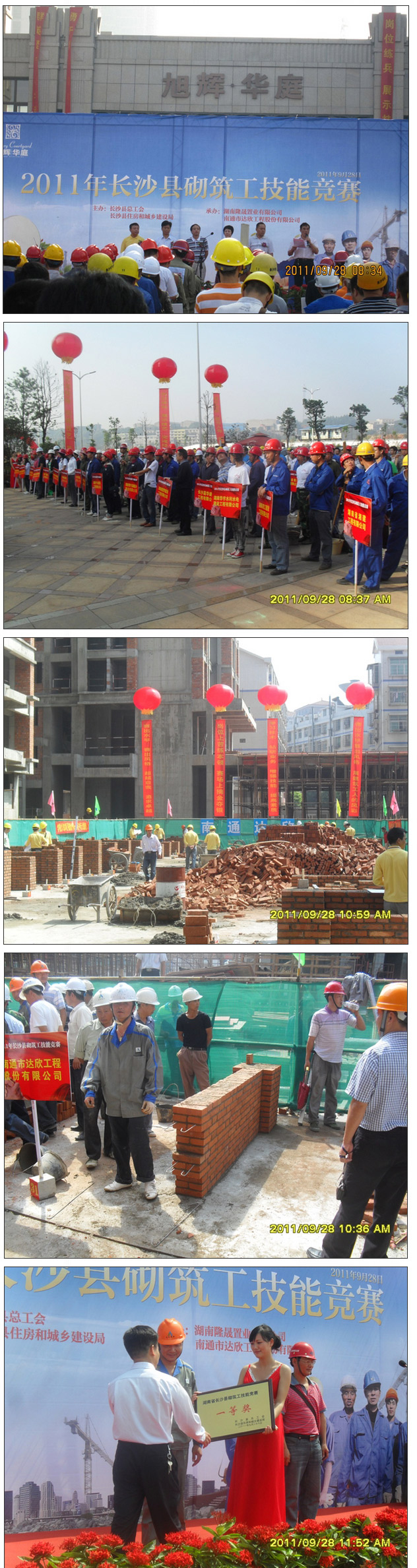 9月28日上午,秋高氣爽、丹桂飄香,由長沙縣總工會(huì)、長沙縣住房和城鄉(xiāng)建設(shè)局主辦,湖南隆晟置業(yè)有限公司和我公司承辦的 2011年長沙縣砌筑工技能競賽活動(dòng)圓滿落幕。第一工程公司長沙旭輝?華庭項(xiàng)目部選手方子星一舉奪冠,榮獲參賽單位集體一等獎(jiǎng)。