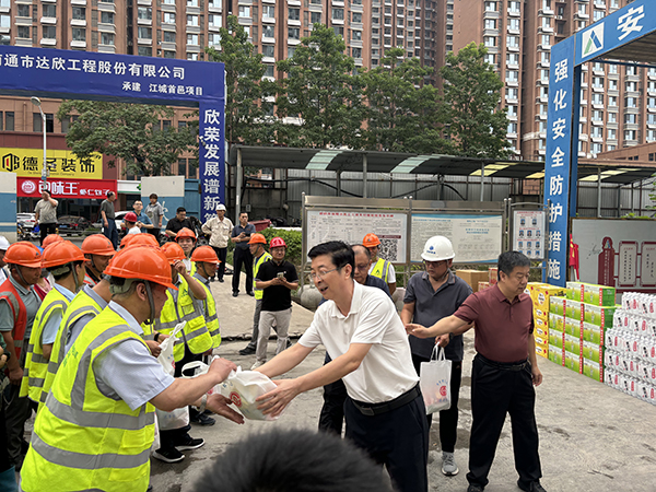 7月5日上午,邯鄲市總工會主席李書平一行蒞臨江城首邑項(xiàng)目,對一線職工進(jìn)行高溫慰問與關(guān)懷。李主席向項(xiàng)目施工人員發(fā)放了毛巾、礦泉水、綠茶等防暑降溫品,表達(dá)了黨和政府對基層勞動者的關(guān)心與支持。