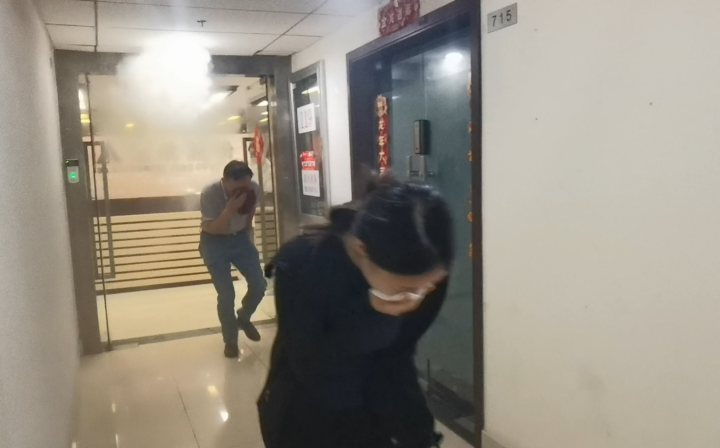 現(xiàn)場(chǎng)從發(fā)現(xiàn)著火點(diǎn)、報(bào)警、疏散人員等情景開(kāi)展模擬演練。隨著火警警報(bào)的響起,在場(chǎng)人員立即按照預(yù)先制定的疏散方案行動(dòng)。大家迅速采取“彎腰低頭、捂鼻貼墻”的逃生姿勢(shì),在疏散過(guò)程中,大家保持冷靜,有序地沿著疏散通道向室外撤離。