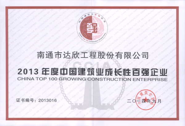 根據(jù)《中國建筑業(yè)雙百強企業(yè)評價辦法》,經(jīng)企業(yè)申報、各地區(qū)和有關(guān)行業(yè)建筑業(yè)(建設(shè))協(xié)會審核、中建協(xié)復(fù)核、專家評審、公示等程序,我公司入選2013年度中國建筑業(yè)成長性百強企業(yè),名次排位第16名,較2012年度提升12位,較2011年度提升32位。