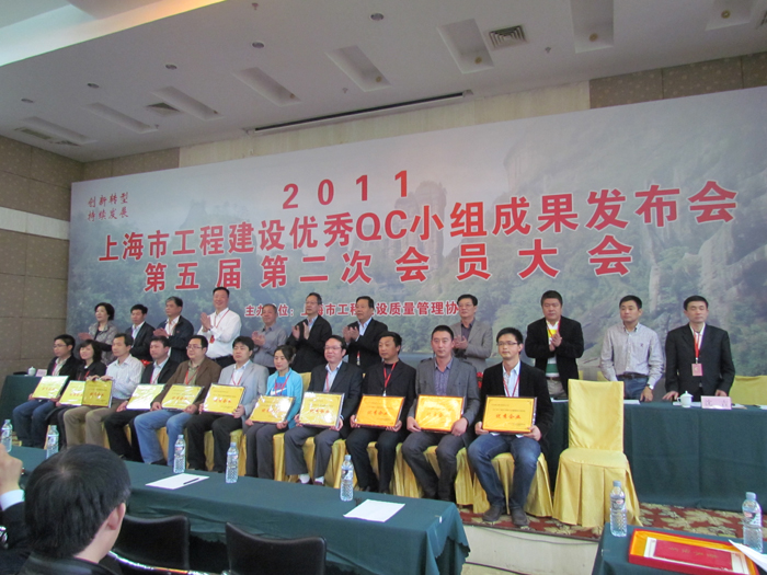 4月17日上海市工程建設(shè)質(zhì)量管理協(xié)會召開2011年建設(shè)工程優(yōu)秀QC小組活動成果發(fā)布會暨第五屆第二次會員大會。第一工程公司選送的 “攻克3m厚大體積砼底板裂縫”、“提高施工現(xiàn)場安全達(dá)標(biāo)優(yōu)良率”、“推行‘四節(jié)一環(huán)?!行Ы档凸こ坛杀尽?、“提高建筑幕墻工程的施工質(zhì)量”、“有效控制填充墻內(nèi)混凝土構(gòu)造柱裂縫”、“有效控制斜屋面混凝土施工質(zhì)量”、“提高YTONG砂加氣砼砌塊砌筑合格率”、“有效提高模板工程施工質(zhì)量”、“降低明珠城三期工程鋼筋損耗”等九項QC成果均參加本次活動的發(fā)布與交流。這次江蘇省在滬企業(yè)參加QC成果發(fā)布、交流共83篇,我公司就占據(jù)其中的14%,得到了駐滬辦領(lǐng)導(dǎo)的充分肯定。工程公司也被上海市工程建設(shè)質(zhì)量管理協(xié)會評為2011年上海市建設(shè)質(zhì)量管理小組活動優(yōu)秀企業(yè)。