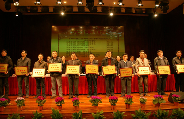 3月5日,江蘇省人民政府駐滬辦、江蘇省建筑工程管理局在上海隆重召開了2010年進(jìn)滬施工總結(jié)表彰大會(huì),出席大會(huì)的有江蘇省人民政府駐上海辦事處主任王建康、上海市建設(shè)和交通委員會(huì)副主任沈曉蘇、江蘇省城鄉(xiāng)建設(shè)廳副廳長徐學(xué)軍、江蘇省人民政府駐滬辦機(jī)關(guān)黨委副書記陳殿云、上海市建筑業(yè)管理辦公室主任曾明、上海建筑施工行業(yè)協(xié)會(huì)秘書長高志海等領(lǐng)導(dǎo),江蘇進(jìn)滬施工企業(yè)負(fù)責(zé)人及先進(jìn)個(gè)人450多人參加大會(huì)。會(huì)上對(duì)進(jìn)滬施工先進(jìn)企業(yè)、先進(jìn)個(gè)人進(jìn)行了頒獎(jiǎng),我公司作為先進(jìn)企業(yè)的代表上臺(tái)領(lǐng)獎(jiǎng)。近幾年第一工程公司拼搏進(jìn)取,在強(qiáng)手如林的上海市場(chǎng),占得了一席之地,同時(shí)公司在上海卓有成效的發(fā)展也得到了江蘇省、上海市建設(shè)主管部門的充分肯定。