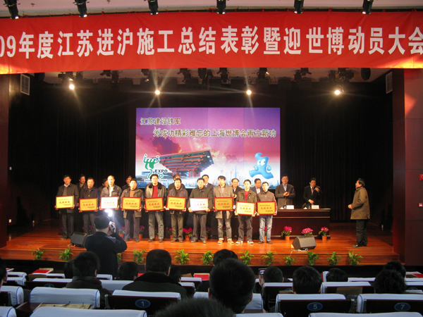 三月十日,江蘇省人民政府駐滬辦、江蘇省建筑工程管理局在上海隆重召開了2009年進滬施工總結(jié)表 彰大會,出席大會的有江蘇省建設廳副廳長、省建管局局長徐學軍、上海市建交委沈主任、建管辦曾主任 、上海市施工行業(yè)協(xié)會高秘書長、省人民政府駐滬辦陳主任、王處長等領(lǐng)導,會上對進滬施工先進企業(yè)、 先進個人進行了頒獎,我公司作為先進企業(yè)的代表上臺領(lǐng)獎,這是公司連續(xù)三年獲此榮譽。近幾年達欣公 司在強手如林的上海市場占得了一席之地,同時公司在上海開拓性的發(fā)展也得到了江蘇省、上海市建設主 管部門的充分肯定。