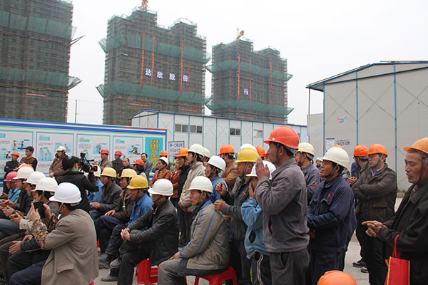 文化志愿者的精彩演出受到了職工們的熱烈歡迎,“我平時(shí)都在高空作業(yè),難得有這樣的機(jī)會(huì)坐下來看現(xiàn)場(chǎng)表演,這樣的活動(dòng)讓我們感到很開心?!惫び牙钊蕠?guó)笑容滿面地說。