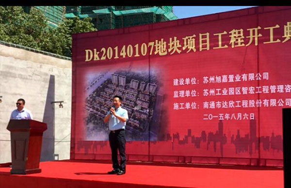 8月6日下午,由第一工程公司承建的蘇州園區(qū)DK20140107地塊項目舉行了簡約而莊重的開工儀式。旭輝集團副總裁、蘇州旭輝事業(yè)部總經(jīng)理王總、片區(qū)負責人何總;蘇州工業(yè)園區(qū)智宏工程管理咨詢有限公司總經(jīng)理張總、現(xiàn)場高總監(jiān);以及我公司黨委書記、副董事長劉厚純、第一工程公司經(jīng)理杭小建、副經(jīng)理嚴正龍等相關領導參加儀式。