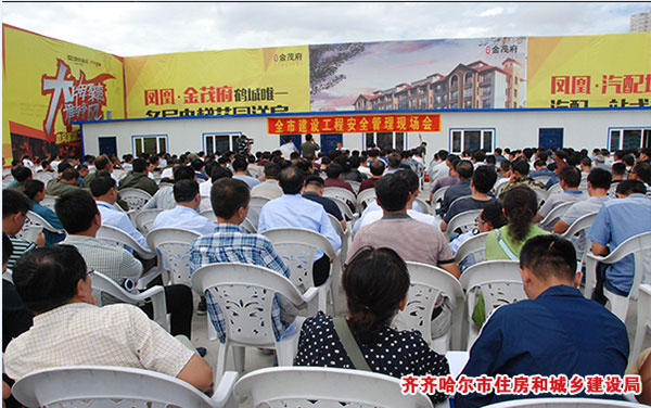 8月25日上午,齊市建設(shè)安全管理現(xiàn)場(chǎng)會(huì)在我公司施工總承包的鳳凰?金瑞府項(xiàng)目舉行。市住建局黨委書(shū)記、局長(zhǎng)黃宇、市住建局黨委委員副局長(zhǎng)王紳,全市各縣(市)區(qū)住建局主管副局長(zhǎng)、安全站站長(zhǎng),在建工程建設(shè)、監(jiān)理、施工區(qū)企業(yè)負(fù)責(zé)人,企業(yè)安全負(fù)責(zé)人、總監(jiān)理工程師、安全監(jiān)理工程師、項(xiàng)目負(fù)責(zé)人、技術(shù)負(fù)責(zé)人500多人參加會(huì)議。