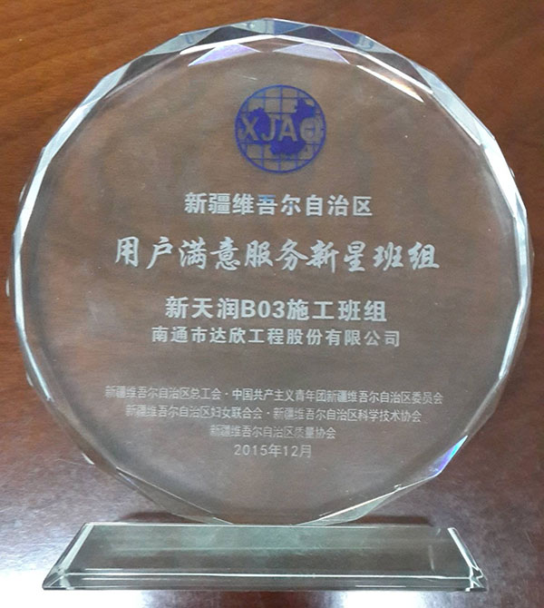 第十一工程公司新疆新天潤B03項目部,憑借可靠的產(chǎn)品質(zhì)量、較高的社會美譽度贏得了用戶和業(yè)主的滿意,通過了2015年度新疆維吾爾自治區(qū)總工會、中國共青團新疆維吾爾自治區(qū)委員會、新疆維吾爾自治區(qū)婦女聯(lián)合會、新疆維吾爾自治區(qū)科學(xué)技術(shù)協(xié)會、新疆維吾爾自治區(qū)質(zhì)量協(xié)會共同組織的專家組現(xiàn)場審核、答辯,成功獲得了新疆維吾爾自治區(qū)全區(qū)、全行業(yè)競爭中建筑業(yè)唯一的“用戶滿意服務(wù)之星新星班組”的光榮稱號(全區(qū)共獲得12個新星班組),充分證明了我公司的綜合實力和業(yè)界廣大客戶對我公司產(chǎn)品的認(rèn)可。